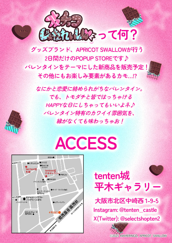 2/14(土)、15(日)の二日間、大阪・中崎町のお店、tenten城のスペースの一部をお借りして、バレンタインPOPUPを行います!