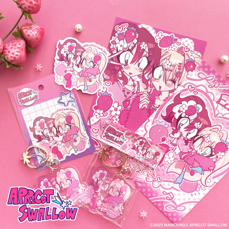 これらのグッズはAPRICOT SWALLOW公式ネットショップで販売中の他、店舗での委託販売を予定しております♪