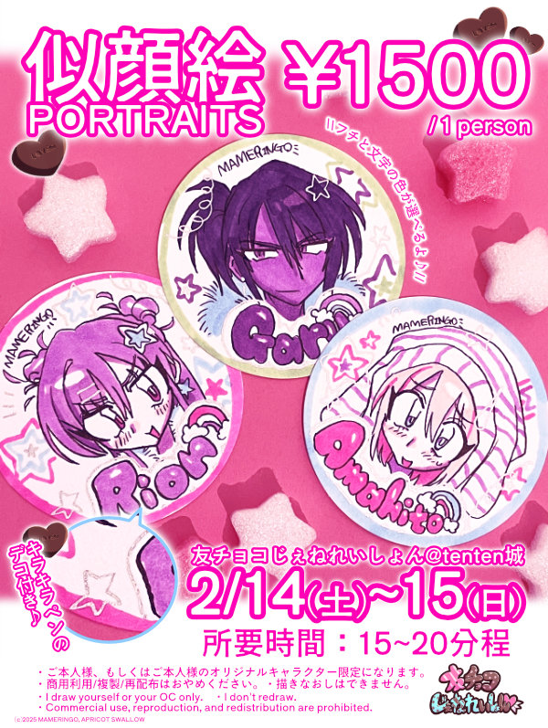 ※似顔絵はご本人様、もしくはご本人様のオリジナルキャラクターのみお描きいたします。